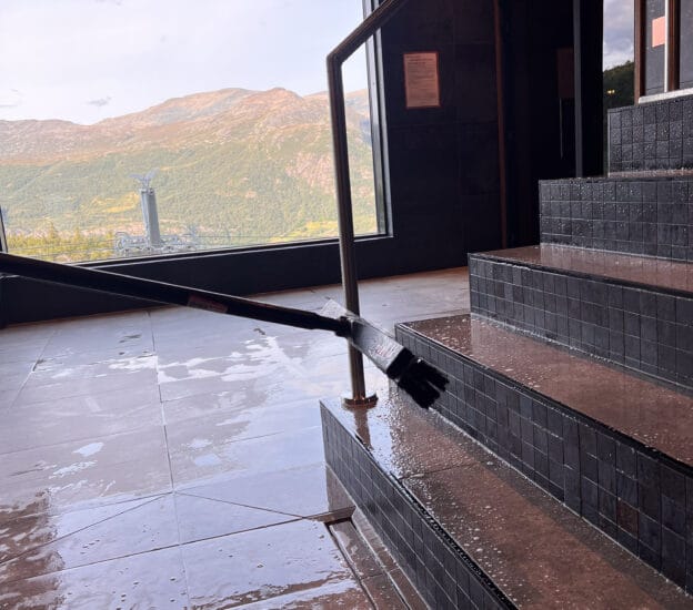 Skliulykker er sterkt forbundet med våte steingulv, badehus og spa- og bassengområder. Det er synd, spesielt siden dette er steder mange besøker for å slappe av, kose seg og ha det hyggelig. «Ikke løp i bassengområdet», «Se opp for glatte gulv» – snakk om stemningsdreper!.