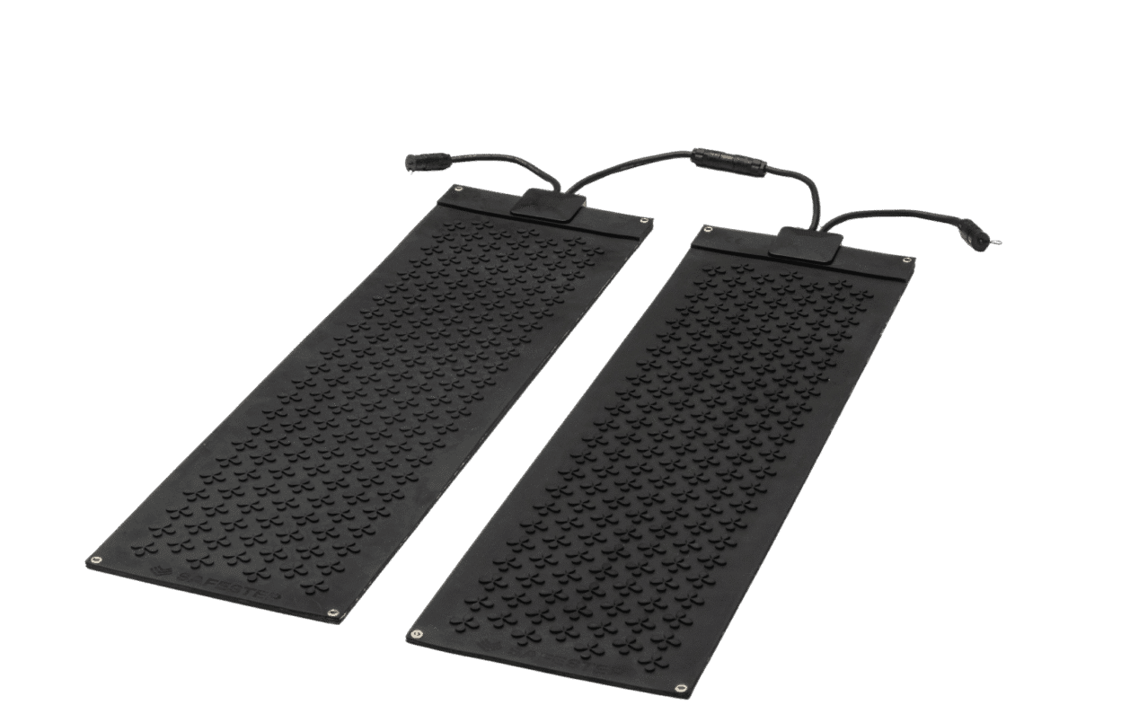 Safestep VARMEMATTE bidrar til økt sikkerhet og reduserer risikoen for skliulykker – og du slipper å måke, strø og salte. Safestep VARMEMATTE er robuste gummimatter med en integrert varmefilm, noe som gir raskere, mer effektiv og jevnere oppvarming. Mattene kobles enkelt til et vanlig 230 V-strømuttak og kan brukes enkeltvis eller seriekobles for å dekke større områder. Mattene smelter ca. 6 cm snø i timen, helt ned til -35 °C.