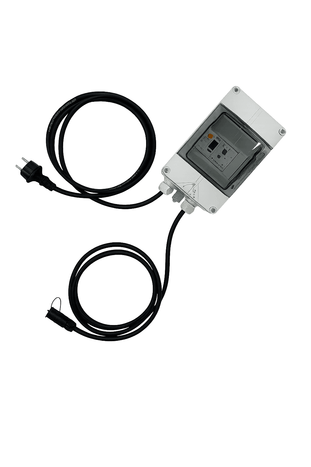 Termostaten er utstyrt med jordfeilautomat og kommer med støpsel for enkel tilkobling, samt en gummikabel med kontakt som plugges direkte inn i varmematten. Monteres innendørs eller utendørs mot husvegg, gjerne under tak, for å hindre fuktinntrengning i skruehull på baksiden av kapslingen.